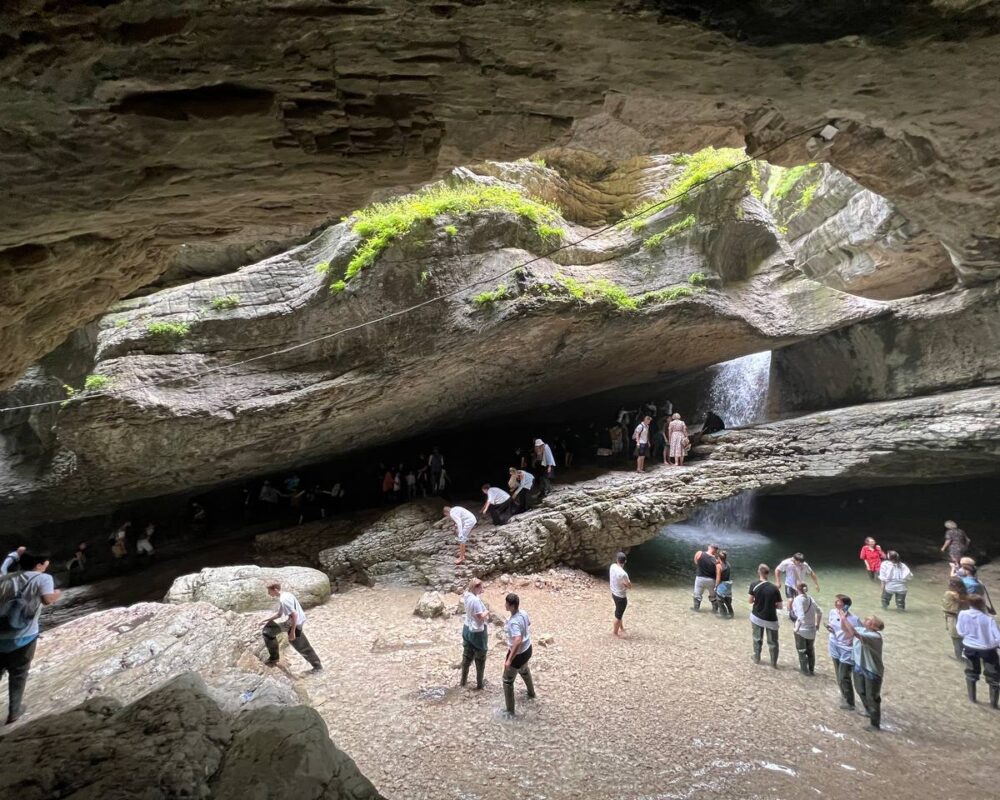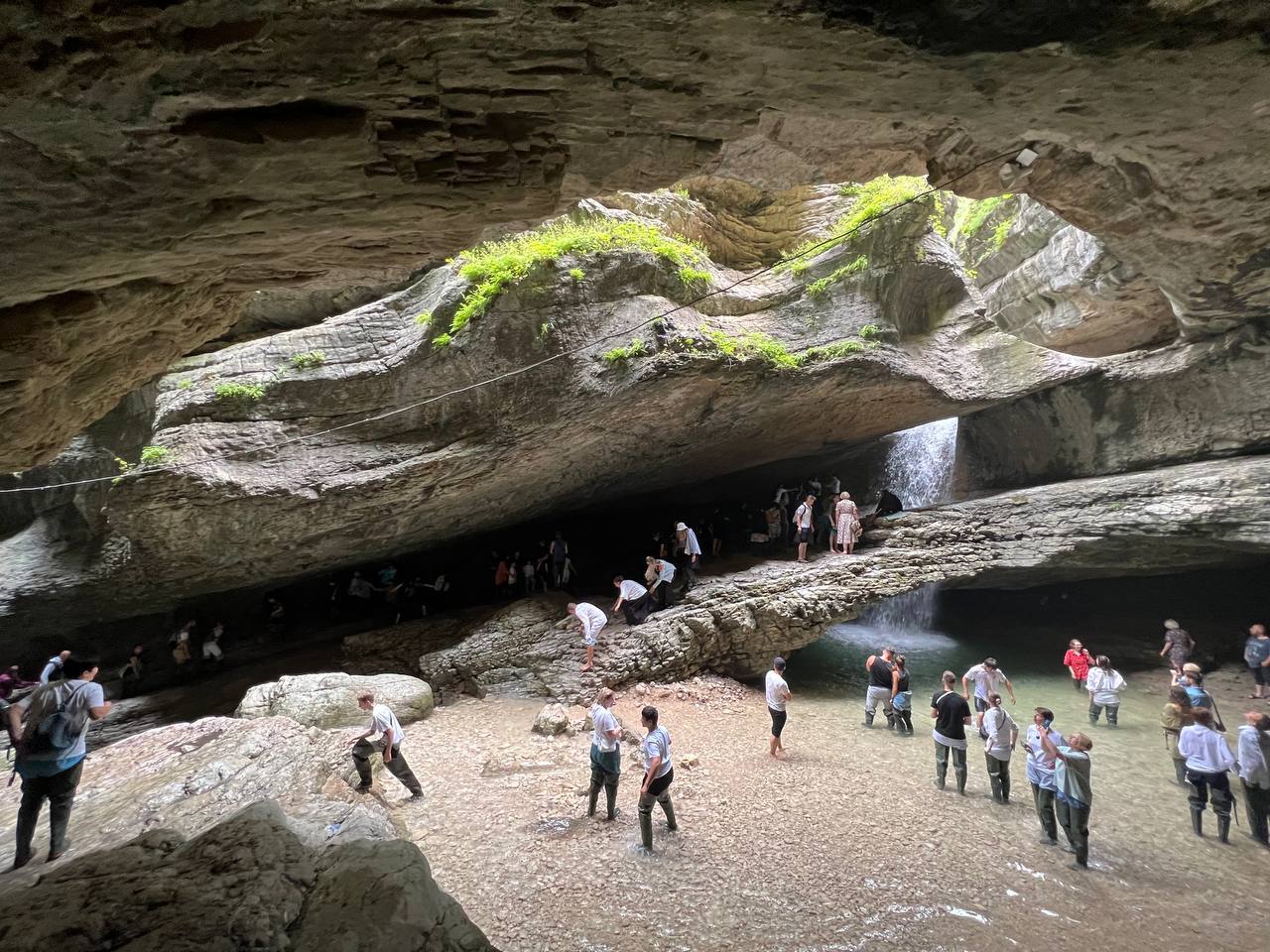 Особо впечатляющим подземный водопад становится после дождя и ближе к лету, когда в горах начинает таять снег. Чтобы к нему приблизиться, местами необходимо идти по руслу речки Салтинки. В дни половодья ее глубина достигает порядка 30 см. Поэтому опытные путешественники советуют обязательно захватить с собой резиновые сапоги. Кроме того, опасность представляют скользкие камни. Но именно в полноводье есть все шансы увидеть невероятный по красоте водопад, отмечают авторы блога «Дороги жизни».
